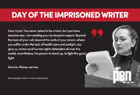 Jedes Jahr am 15. November ruft PEN International die Kampagne "Tag des inhaftierten Schriftstellers" ins Leben, um auf die Fälle inhaftierter oder verfolgter Schriftsteller:innen aufmerksam zu machen und dringende internationale Maßnahmen zu deren Freilassung und Schutz zu fordern.