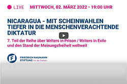 Nina George moderiert zum siebten Mal die Veranstaltungsreihe „Writers in Prison“ bei der Friedrich-Naumann-Stiftung für die Freiheit. Am 2. März ging es um die Situation der Autorinnen und Autoren in Nicaragua, zu Gast waren Gioconda Belli, Lutz Kliche, Ralf Nestmeyer und Elisabeth Maigler Kluesserath. Eine Veranstaltung des PEN-Zentrum Deutschland gemeinsam mit der Friedrich-Naumann-Stiftung für die Freiheit und der Thomas Dehler Stiftung.